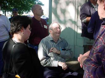 In his account of watching the events behind the Stockade Fence, Hoffman discusses the characters "businessman" and "train man." "Businessman" is described as "neatly attired in a dark business suit, complete with white shirt, necktie, and short-brimmed black hat." "Train man" is described as wearing "striped overalls and a cap andlooked to be a railroad worker going about his duties. . . " (p. 16).