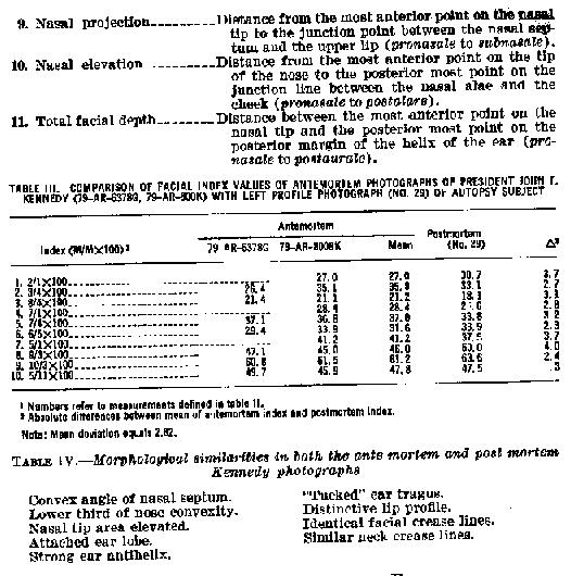 TABLE III.--COMPARISON OF FACIAL INDEX VALUES OF ANTEMORTEM PHOTOGRAPHS OF PRESIDENT JOHN F. KENNEDY (79-AR-6378G, 79--AR-800K) WITH LEFT PROFILE PHOTOGRAPH (NO. 29) OF AUTOPSY SUBJECT