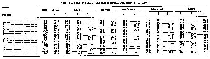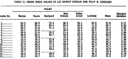 TABLE II.--MEAN INDEX VALUES OF LEE HARVEY OSWALD AND BILLY IN. LOVELADY