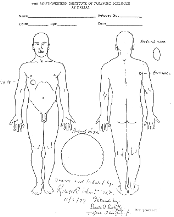 FIGURE 4.--Drawing of the posterior thorax of President John F. Kennedy, revealing the general location and appearance of the entrance wound in the upper back.