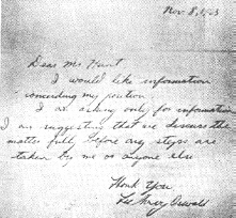 - November 8, 1963. Photograph of a facsimile copy of a handwritten letter to Mr. Hunt.