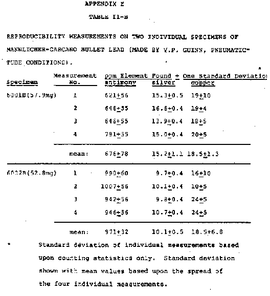 Dr. GUINN - Looking over all of the data that we have obtained and also other people have obtained who have been using the same general approach, we find there are three elements that commonly show up in bullet leads but at widely different concentrations, depending upon which bullet lead it is. These three elements are antimony, silver, and copper. And I would say that that is about the approximate order of importance--that is, antimony being perhaps the most informative or the most critical element to measure; silver, very close to it; copper, somewhat less, though, mainly because copper wouldn't be so bad in and of itself but, in criminal cases, you very frequently are looking at little bits and pieces of bullets, and the original bullets were copper-jacketed and that means some of the fragments you get may have a little bit of copper imbedded in them physically that you can't see and yet it will show up markedly in the analysis. So the copper numbers can often bounce around.
