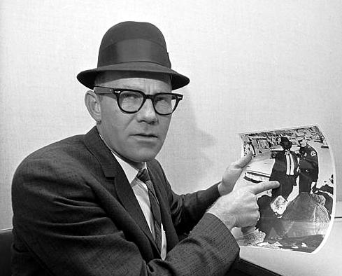 Conspiracists insist that Agent picked the bullet up, and as evidence they offer a photo that shows the man with his back to the camera, and his left hand cupped (at right below). The assumption is that the man is holding the bullet that he has just picked up. Deputy Buddy Walthers continues to look at the ground.